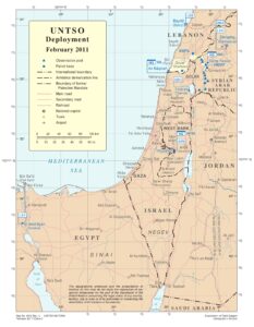 1. United Nations Truce Supervision Organization (UNTSO) deployment at February 2011. United Nations – United Nations Cartographic Section. Public Domain.